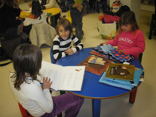 Pau i Marc van trobar un llibre de buscar al protagonista de la història dins d'un gran dibuix i els va agradar moltíssim. Marc també va llegir un llibre d'àligues on contava les coses que havíem llegit a classe eixe mateix matí. Per exemple, els pollets són blancs i estan completament indefensos, necessitant l'ajuda del pare i de la mare fins que ja saben volar per eixir del niu.